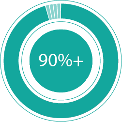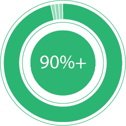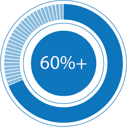 • 60%+ of primary raw materials are developed with a minimum of 50% recycled content.