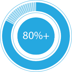 • 80%+ of primary raw materials are developed with a minimum of 20% recycled content.