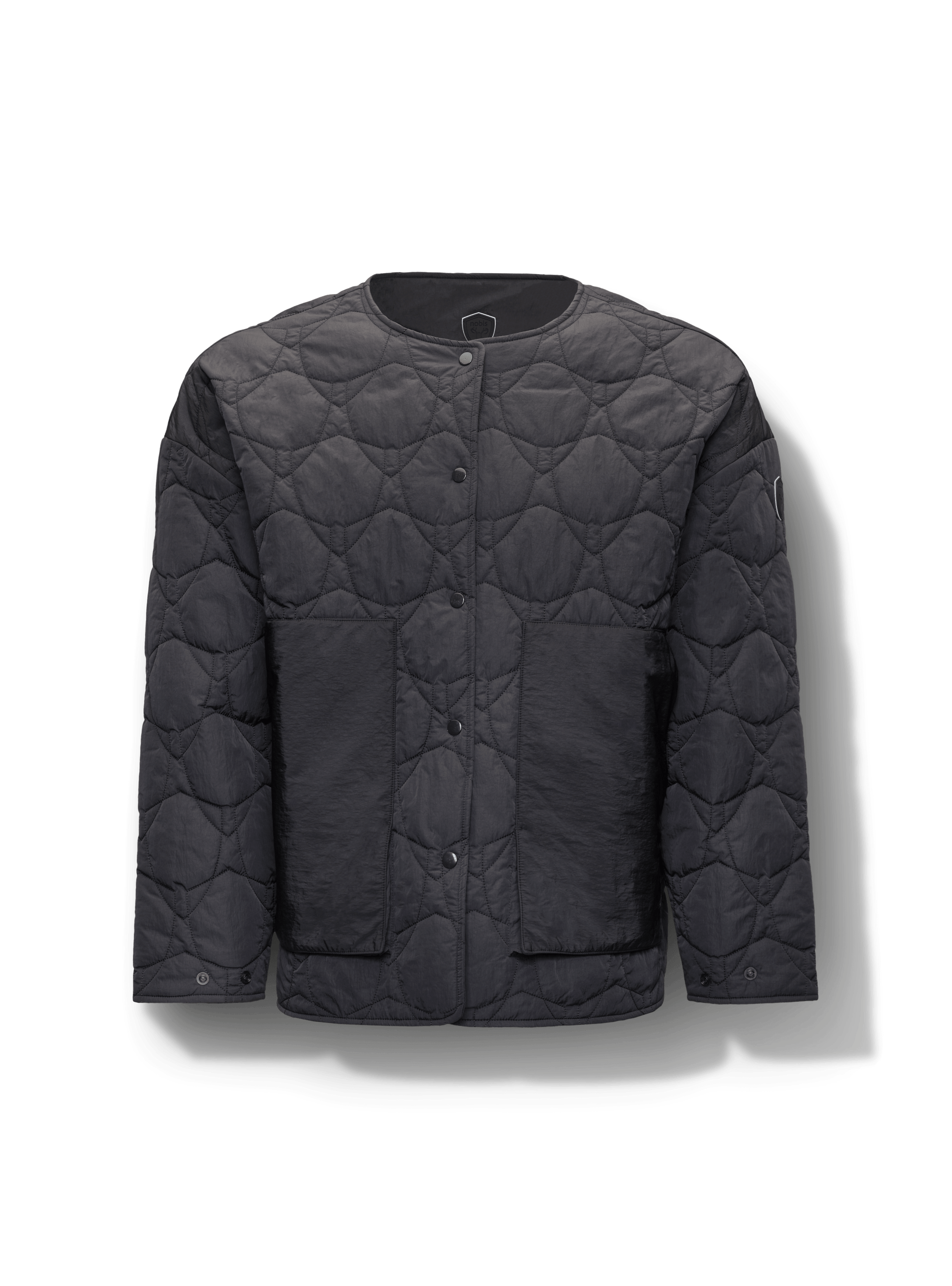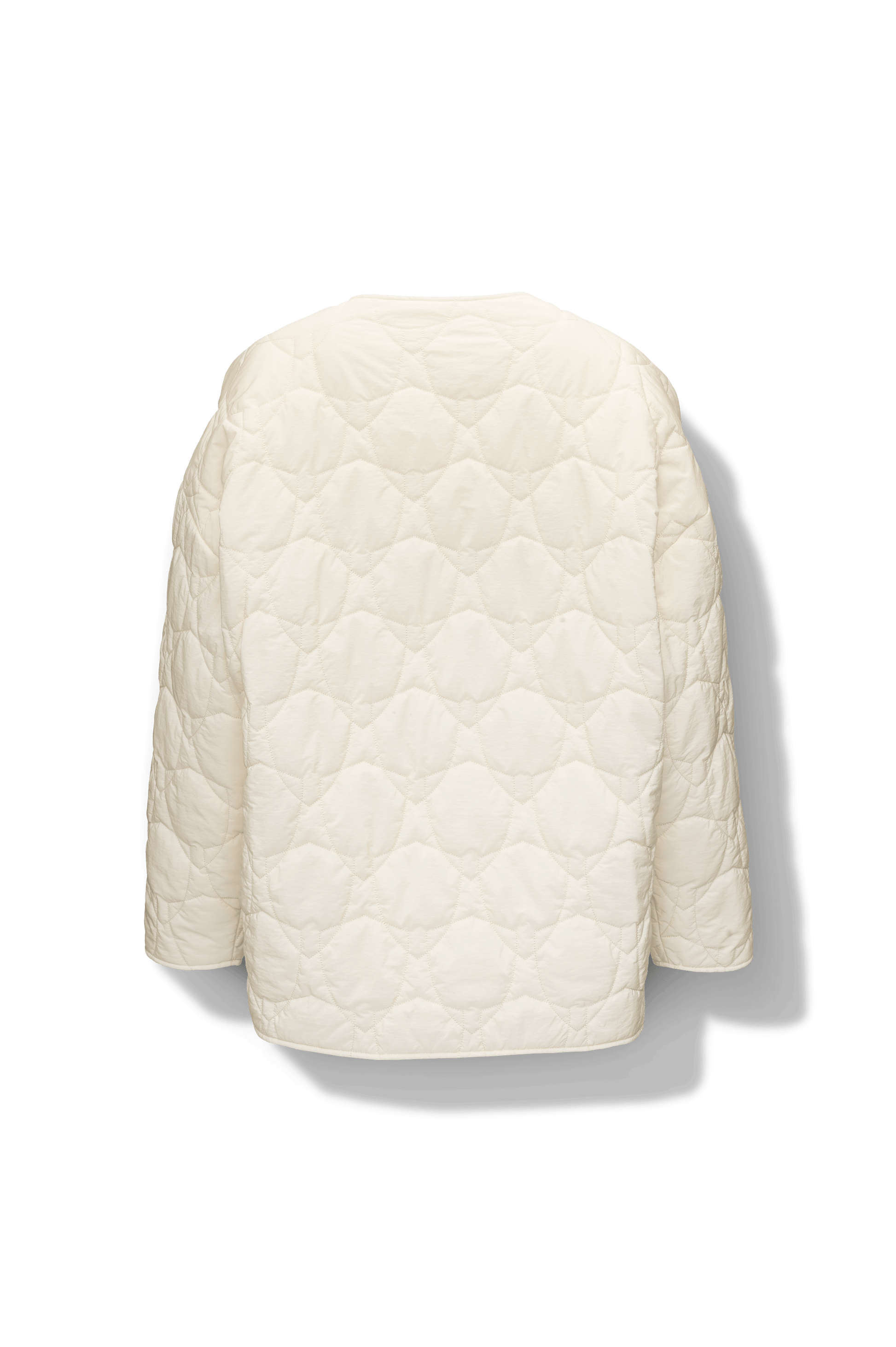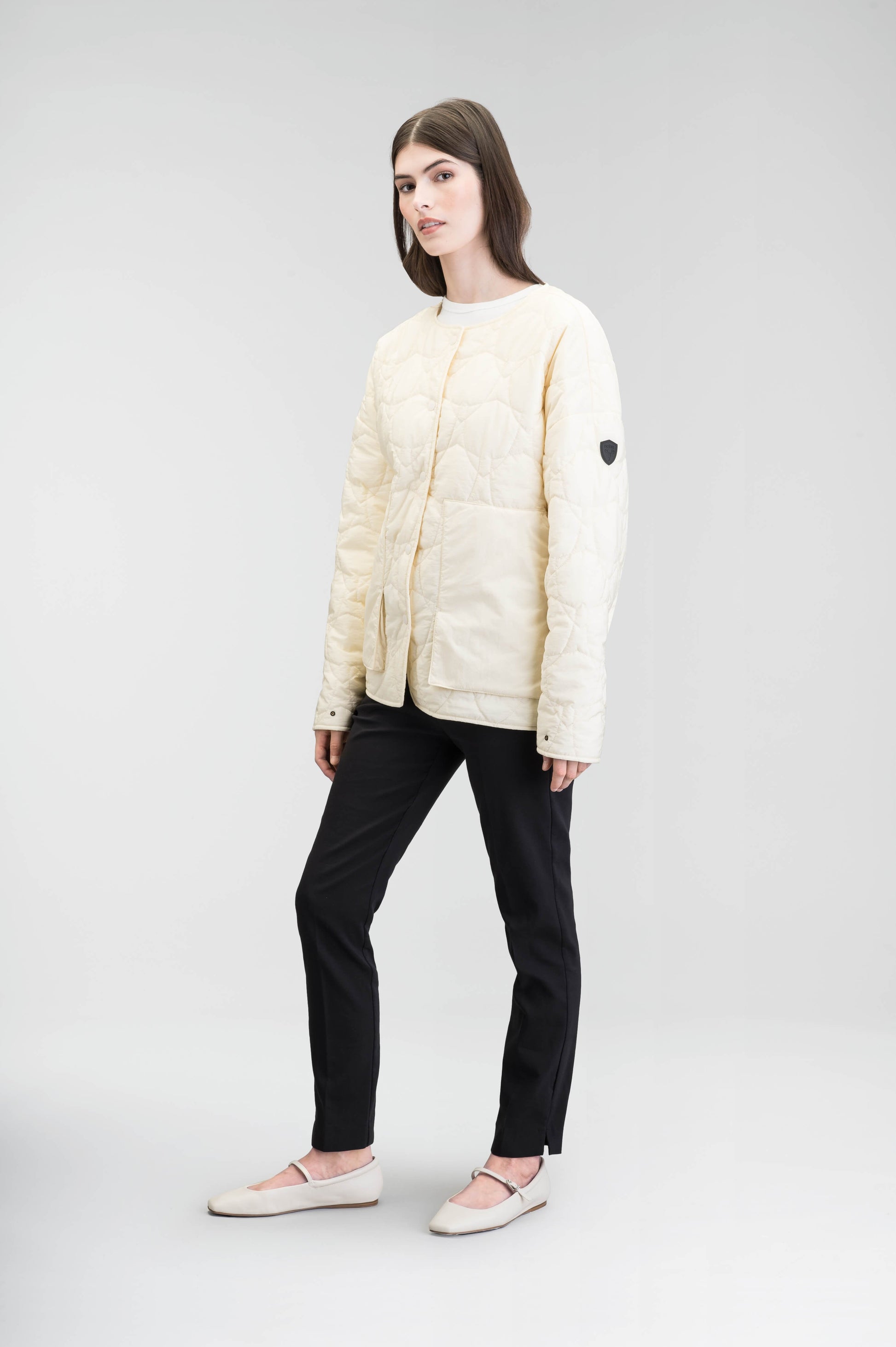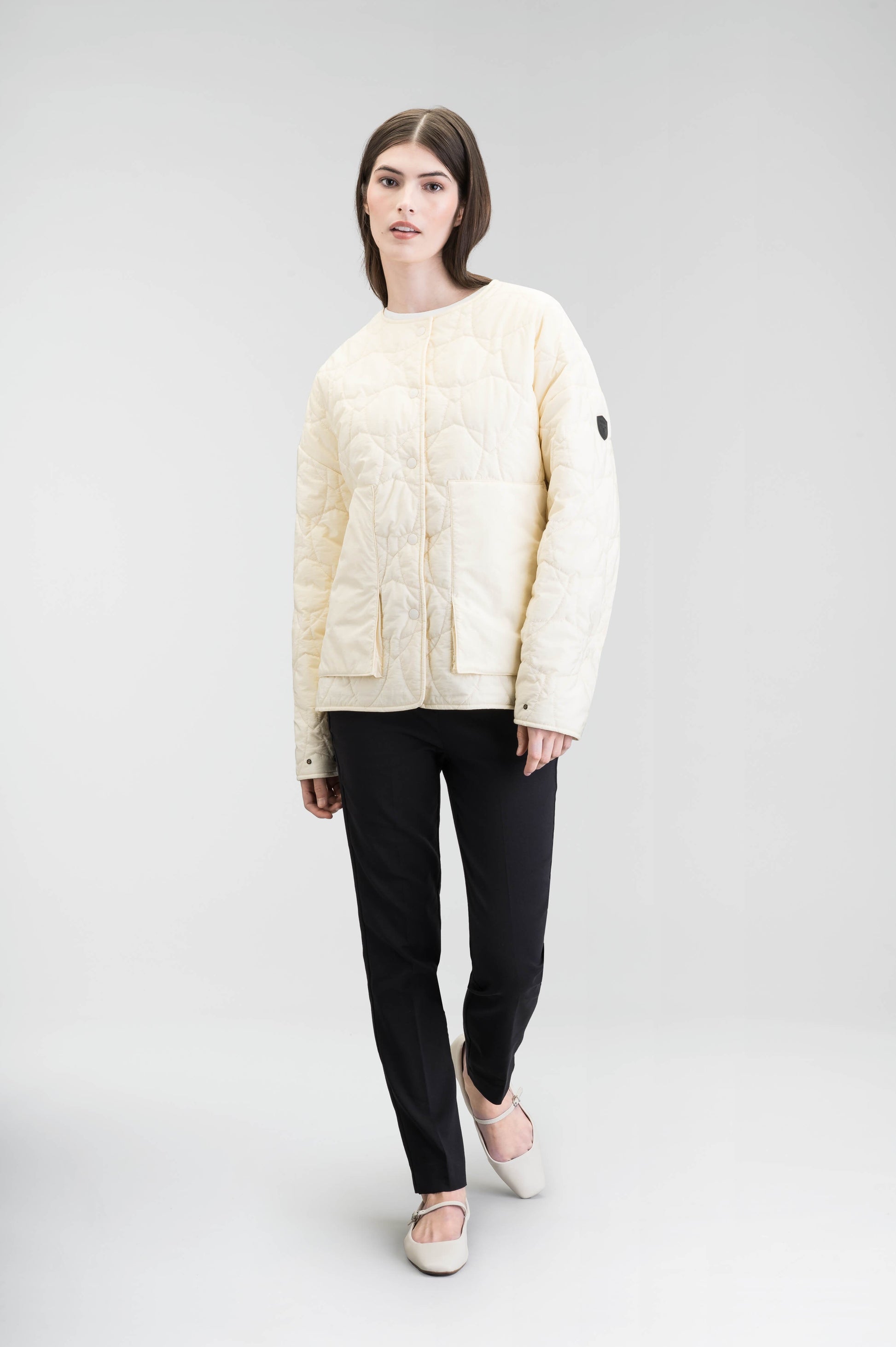 Calida brings elevated warmth and everyday ease to transitional weather dressing Crafted for versatility, the Calida is designed to move with you while keeping you protected from the elements. Engineered with premium 4-way stretch Primaloft Gold Insulation Active+, the Calida offers exceptional warmth without bulk. This innovative insulation provides breathable comfort and adaptive movement, whether you're layering for an early morning commute or heading out for a weekend walk. The design is finished with functional details that enhance its utility: large patch waist pockets with side-entry access provide generous storage and hand-warming comfort, while snap button closures at the front and cuffs add a clean, tailored finish. The Calida is the perfect lightweight layer for in-between seasons. Its relaxed fit allows for effortless layering over knits or under outerwear.