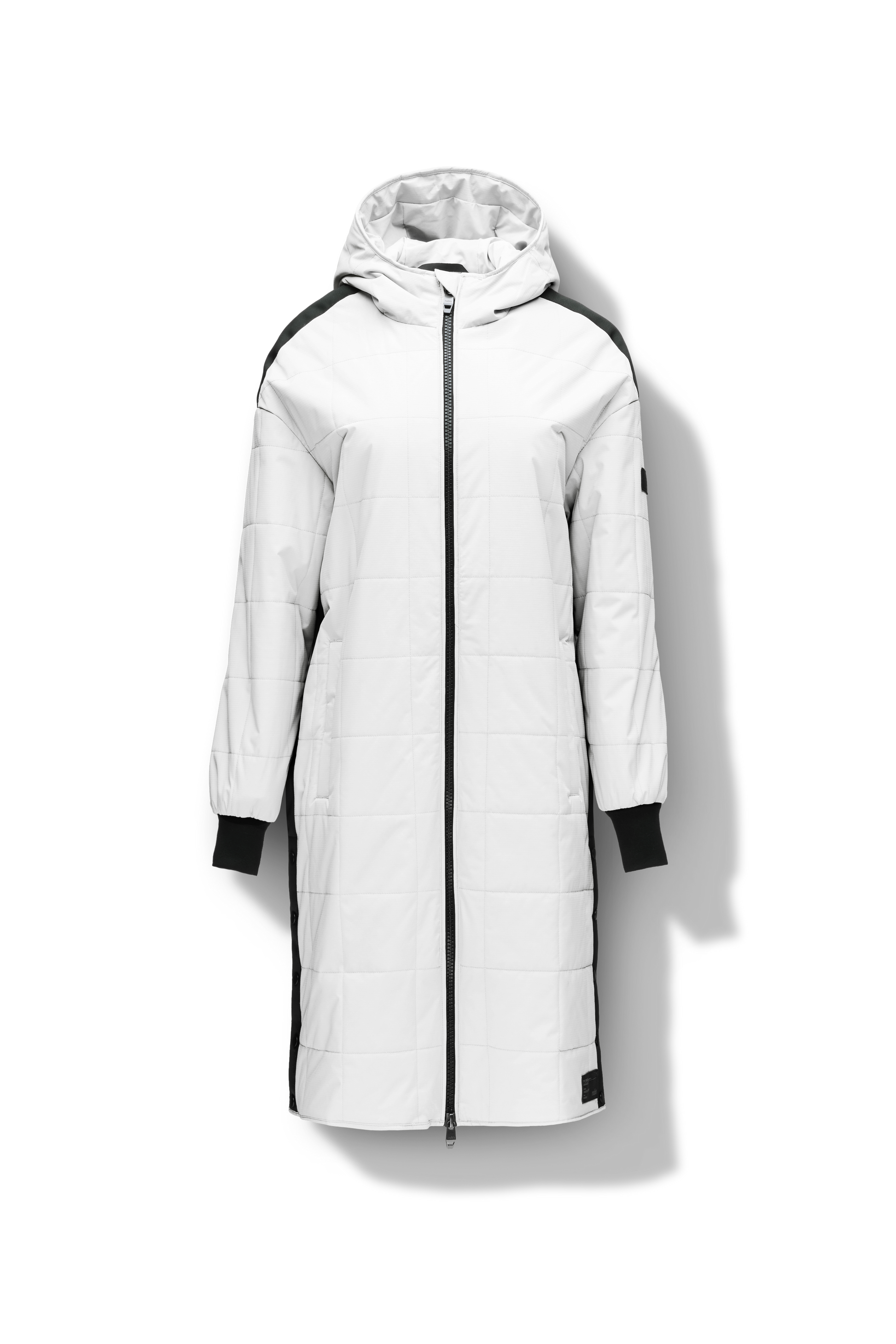 Looking for a stylish and functional jacket for the transitional season? Look no further than our Radar. The stretch ripstop fabrication and stretch Toray nylon with DWR coating provide exceptional protection against the elements. Plus, the Primaloft Gold Insulation Active+ ensures superior warmth and flexibility. With a 2-way branded zipper at the center front, single welt pockets with magnetic closure at the hips, and elongated ribbed cuffs, this jacket is both functional and comfortable. The grosgrain ribbon detail at the shoulder and side seams adds a touch of style, while the snap closure side seam vent provides ventilation.