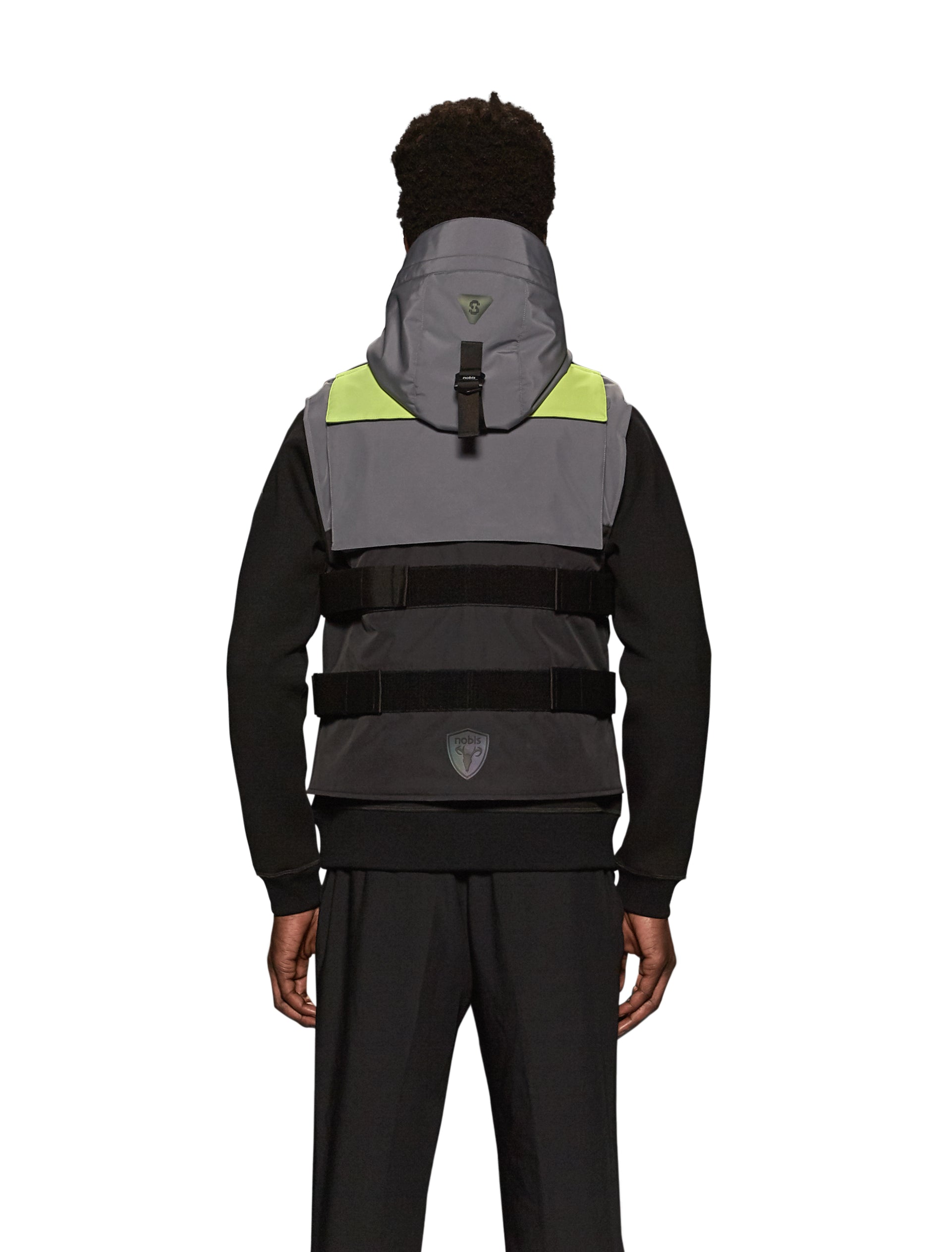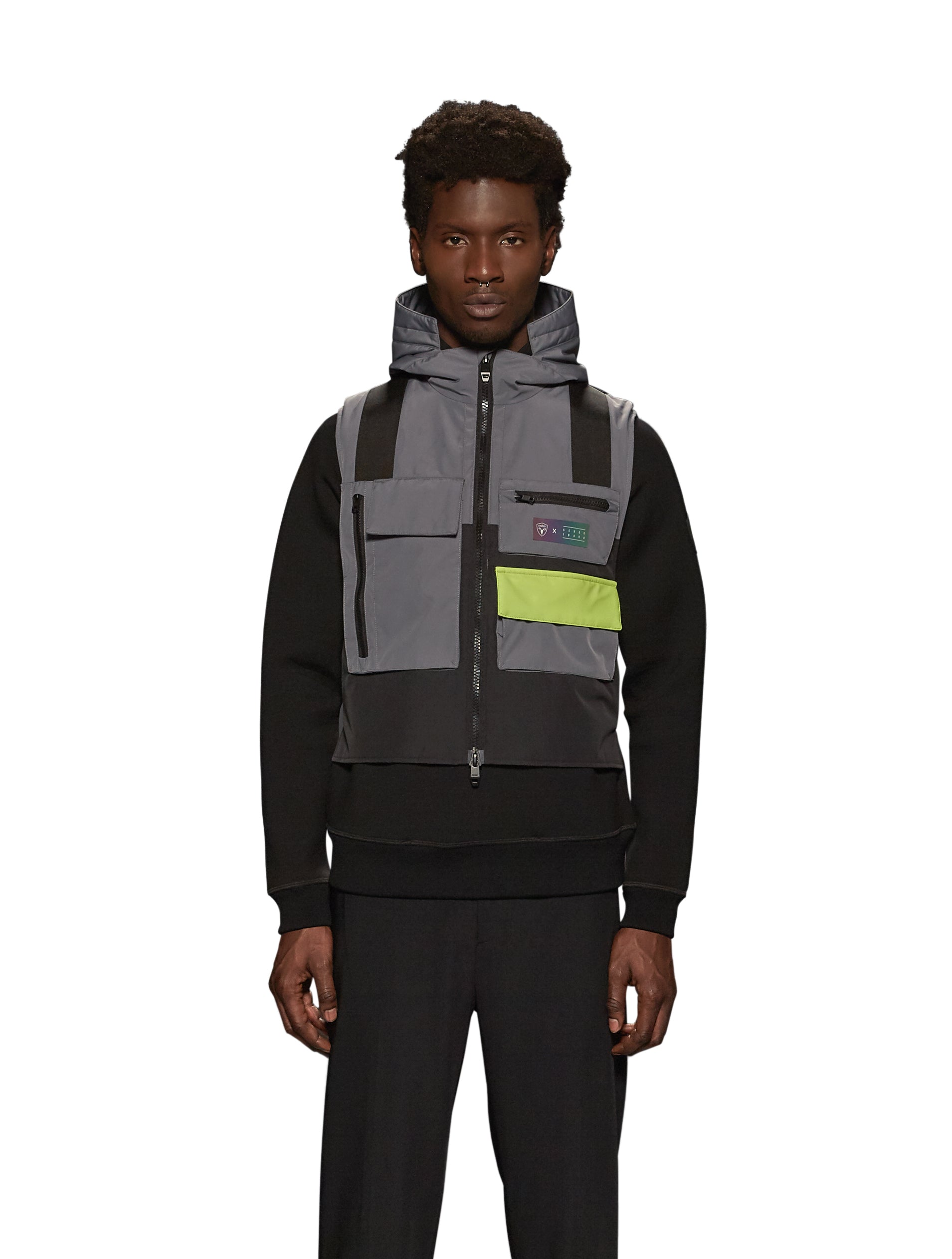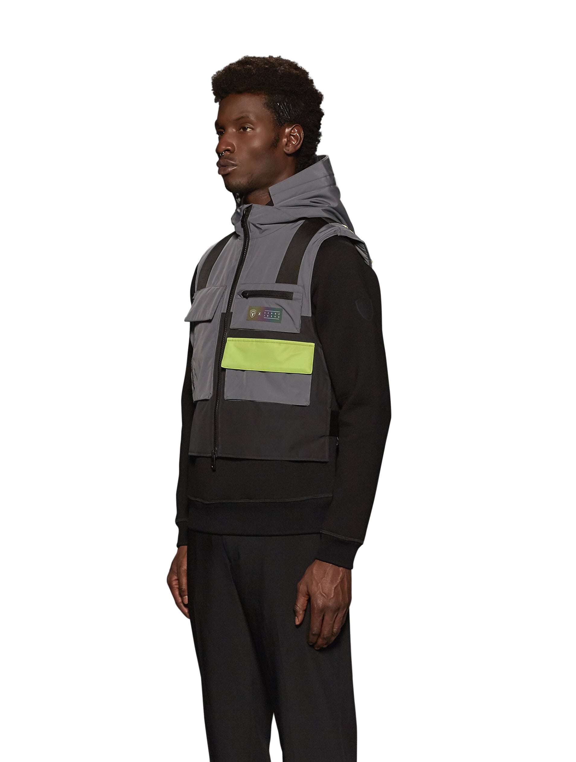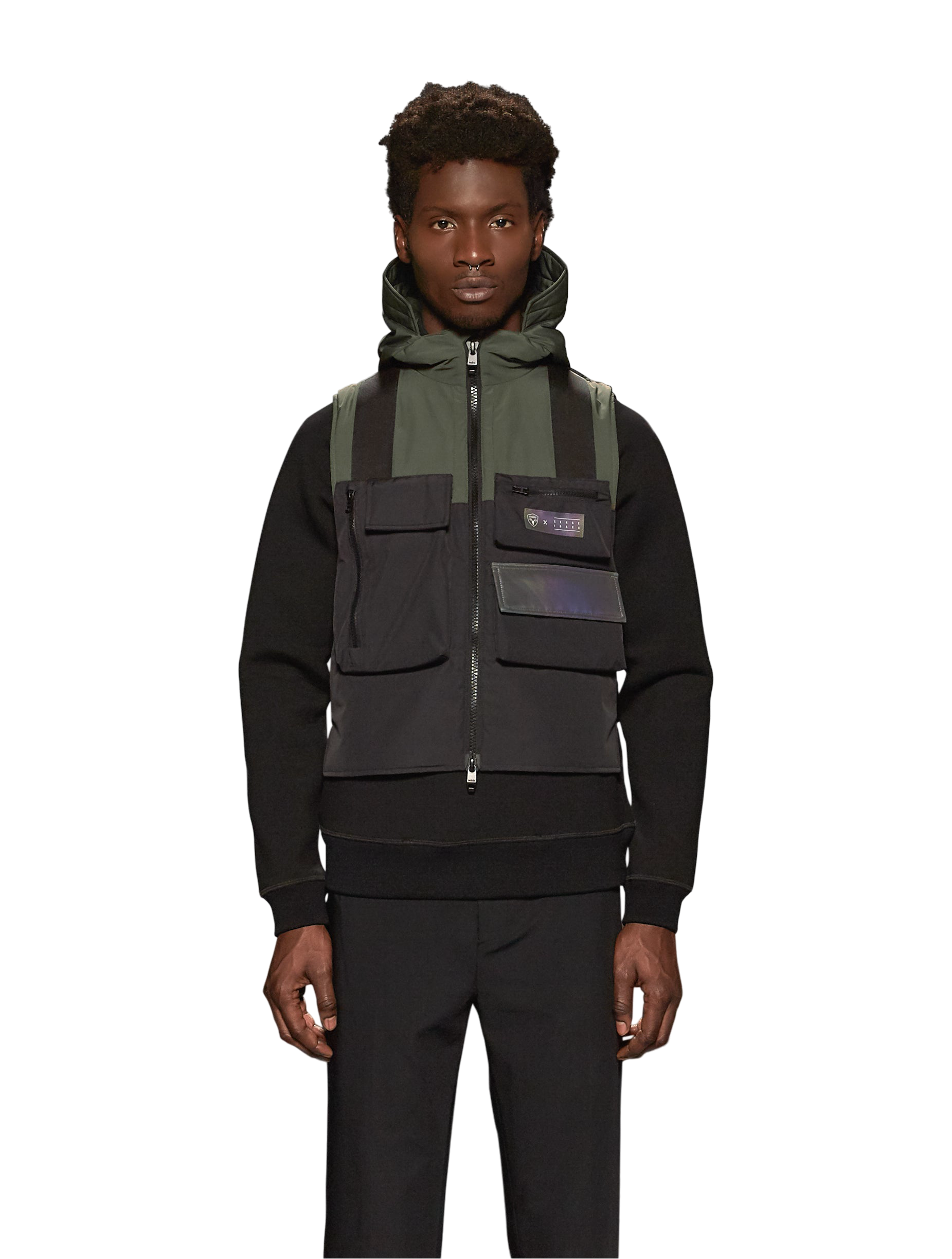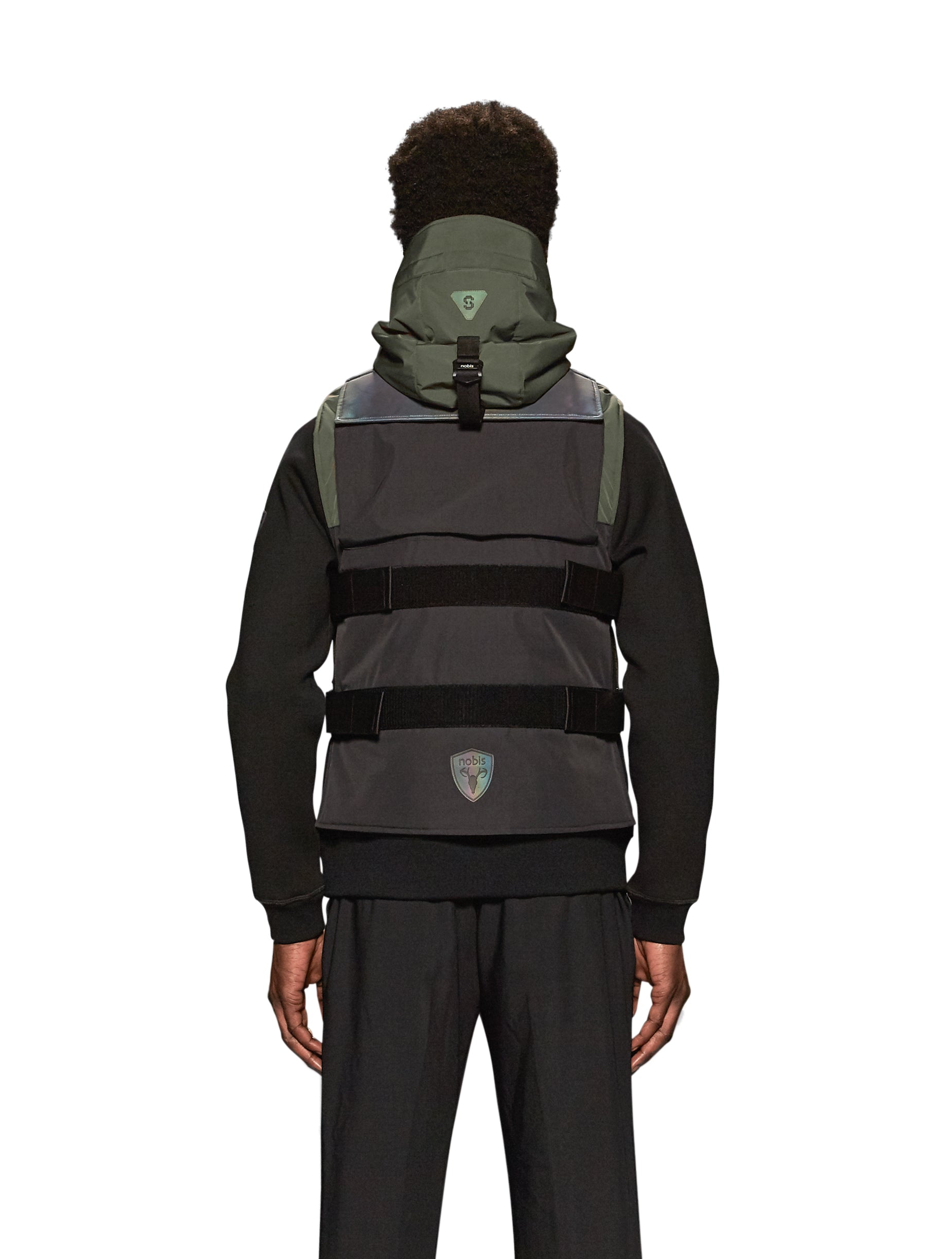 The tactical vest from the Nobis x Serge Ibaka collection is the ideal outerwear for transitional weather and mild winter days. It's made from durable performance fabric and insulated with lightweight Primaloft padding. It's also highly functional, with multiple exterior pockets that close with a zipper or magnetic flap, a waterproof hood, reflective detailing and tuck-away face mask that can be deployed and removed when required.