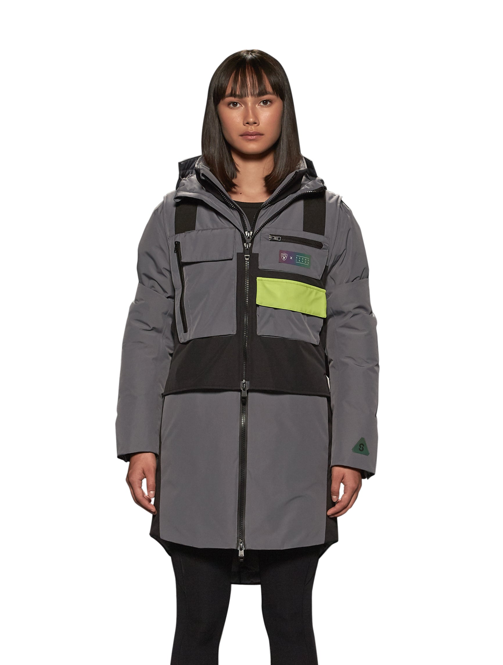 - Exposed 2-way Vislon zipper with exclusive Nobis branded pullers